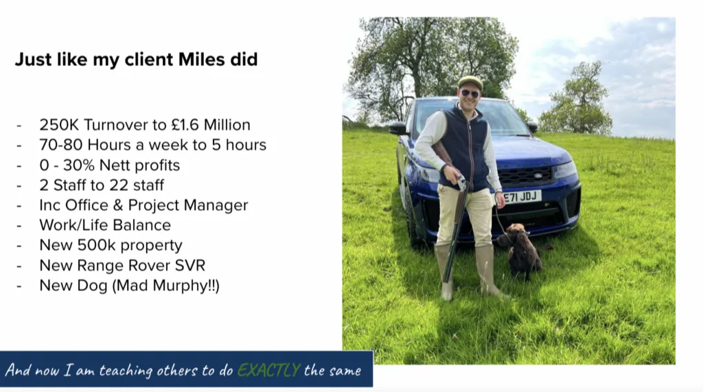 These are the results that I’ve been able to get a 25 year old client of mine. After systemising and recruiting, he earns £270k net profit per year, working 5-10 hours per week!